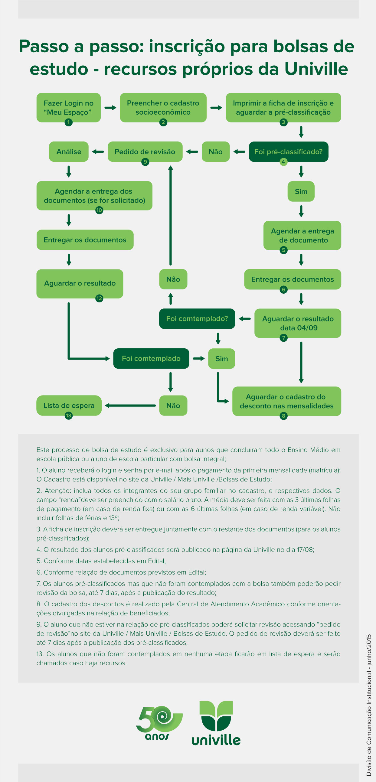 Ler o Edital vigente em período indicado pela instituição, disponível em www.univille.br/bolsas;